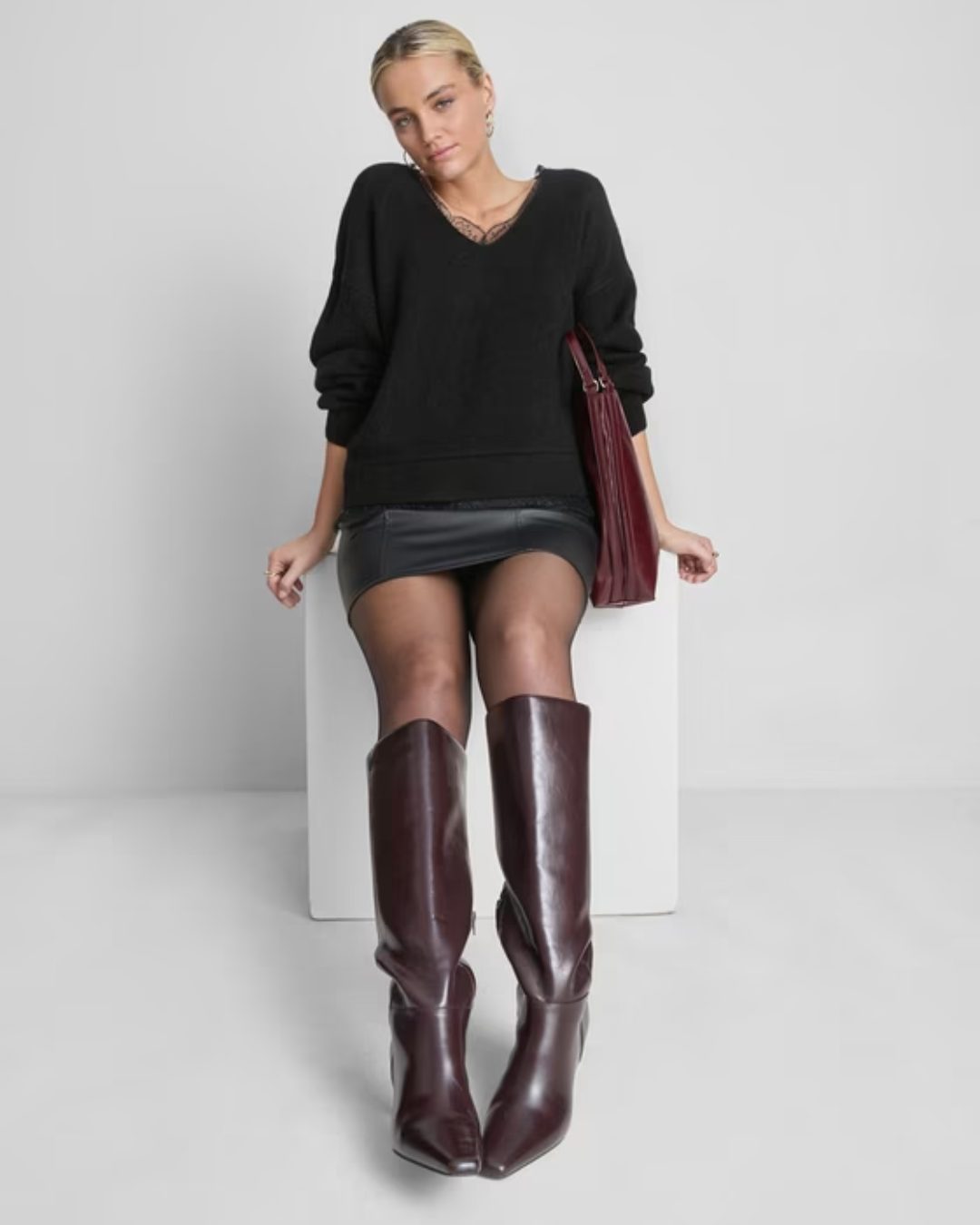 For a bolder festive vibe you could also mix and match: a velvet or satiny top from Next or New Look + high‑heels from Deichmann. Accessories like a festive clutch or statement jewellery complete the look.